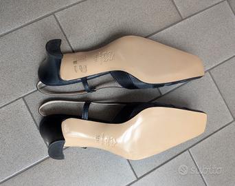 Eleganti Scarpe sandali da donna, tacco medio, marca Ferrario, con dettagli in rete, nere.