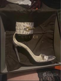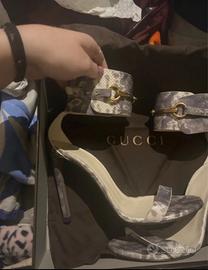 Splendidi sandali Gucci con stampa pitonata e cinturino dorato. Ideali per occasioni speciali, offrono comfort e stile. Un must-have per chi ama i brand di lusso. Perfetti per l'estate, si abbinano a qualsiasi outfit, donando un tocco di eleganza sofisticata. #gucci #tacchi