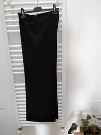 Elegantissimi e morbidi pantaloni di sartoria italiana neri con piega sagomata sul davanti, vestibilità perfetta in vita e sul bacino, larghi di gamba. TG 42/44 italiana (S/M).