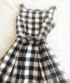 Elegante abito francese (ditta Mitsouki /Paris) . Colore : fantasia a quadri nero e beige rosato . Stile : Vichy. Stoffa : misto seta . Taglia : S/M
