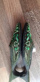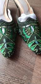 eleganti scarpe ricamate mai usate n.39 verde scuro e verde chiaro