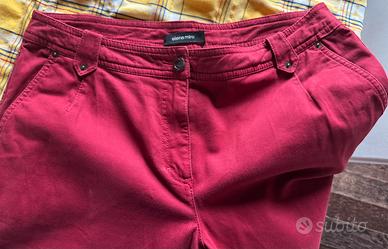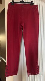 Completo pantalone rosso burgundi Elena Miró taglia 39, morbido e caldo. Blusa fantasia abbinata taglia 50.