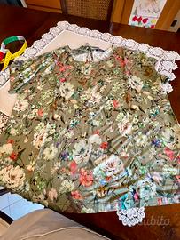 Causa inutilizzo vendo una maglietta maniche corte motivo fioritura su sfondo verde salvia