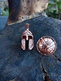 Runa perlina riproducente un elmo e scudo spartano per ciondoli , bracciali o portachiavi fai da te in metallo pieno e colore riproduce rame vecchio. Stupendo e introvabile come tante altre cosucce che ho date un occhiata, sconti su acquisti multipli. #elmospartano #runa #perlina #portachiavi #spartan #guerriero #roma #elmo #culturspartan #gioiello #paracord