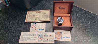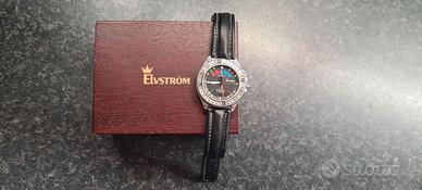 Vendo Elvstrom Lemania orologio ambito da velisti e sportivi che prende il nome dal velista Danese Elvstrom, quattro volte medaglia d'oro alle olimpiadi. Acquistato da me nuovo nel 1988 usato solo un paio di anni e poi solo saltuariamente. Funzonante ed in ottime condizioni. Completo di tutti i suoi accessori: Garanzia, scatola di imballaggio originale, libretto istruzioni, brochure ecc. ecc. Cassa in titanio dal diametro di 42mm, impermeabile fino a 100 m. Cronografo con movimento automatico, corona protetta, vetro in zaffiro antiriflesso ed inscalfibile. Vendo a persone referenziate che si presentino con nome e cognome, non spedisco, consegno personalmente a pagamento avvenuto e soldi sul conto corrente. Astenersi perditempo e truffatori.