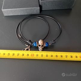 Emanuele Bicocchi collana con ciondolo teschio, nuova con scatola.
