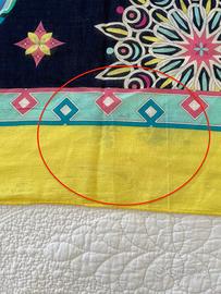 Elegantissimo pareo / stola Emilio Pucci in fantasia multicolore. Accessorio dei primi ‘2000. Igienizzato, presenta diverse macchie lungo tutti i lati del perimetro giallo (si veda fotografia corrispondente a titolo di esempio) ma altrimenti no segni di usura oltremodo evidenti. Materiale 100% cotone. Misure: 150x100 cm A disposizione per fotografie aggiuntive o chiarimenti!