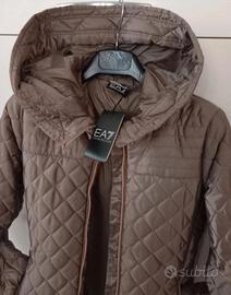 Emporio Armani piumino originale trapuntato con cappuccio e collo alto molto bello indossato nuovo con etichetta tg.xs/s color tortora