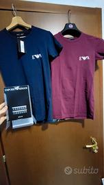 Vendo coppia T-Shirt di Emporio armani di colore blu navy e rosso mattone nuove con cartellino e scatola originale.