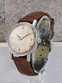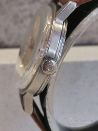 Marca: Enicar Modello: Ocean Pearl Star Jewels Referenza: 140-39-05A Movimento: Enicar AR-1140 carica manuale Cassa: Acciaio da 35mm Corona: Originale Logata Vetro: Plexy Bracciale: Cinturino pelle marrone Corredo: Assente Anno di produzione: 1960 approssimativo Condizioni estetiche: Molto buone Condizioni funzionali: Ottime Spedizione: Assicurata LE FOTO SONO DA CONSIDERARSI PARTE INTEGRANTE DELLA DESCRIZIONE LA RESTITUZIONE È ACCETTATA SOLAMENTE QUANDO L'OGGETTO DIFFERISCE DALLA FOTO E DALLA DESCRIZIONE (per spedizioni fuori dall'unione europea scriveteci in privato grazie) Per maggiori informazioni contattaci