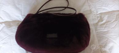 Borsa bordeaux in finta pelliccia e manici in vernice, nuova, mai usata