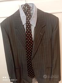 Raffinato completo taglio classico tessuto pregiato tinta caffè con disegno rigato monopetto capo elegante per incontri di lavoro feste cerimonia taglia 50 normale vendo € 25 per completare offro in regalo camicia 2 cravatte seta