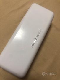 Pinza depilatoria con luce di puntatura. Regolatore di potenza e pinza di ricambio. Azione vibrante a prescindere dal grado di rotazione della manopola di potenza. Funzionamento a batteria.