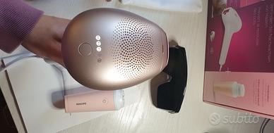 Epilatore Philips a luce pulsata "Lumea Advanced" (SC1994, SC1997, SC1998, SC1999) dotato di presa per caricarlo, 2 testine intercambiabili per coprire differenti zone del corpo e una custodia bianca per riporre l' epilatore.