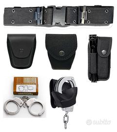Foto 3: cinturone operativo nero, porta torcia e oggetti nero, porta manette nero in cordura o cuoio, manette spagnole.
