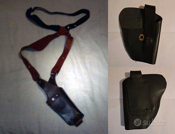 Foto 4: fondina ascellare colore marrone e fondina aperta da cintura colore nero.