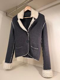 Una splendida giacca corta (cropped) diErmanno Scervino, perfetta per aggiungere un tocco di lusso e sartorialità al tuo guardaroba. Realizzata in un caldo e avvolgente tessuto in maglia testurizzatadi colore grigio scuro o antracite presenta raffinati profili bianco/crema a contrasto che ne esaltano il design unico. Il capo presenta un collo sciallato, tasche laterali e una chiusura con bottoni. Questo capo Made in Italy è ideale per un look sofisticato e di tendenza. Taglia: 44 - M Il marchioErmanno Scervinorappresenta l'eccellenza delMade in Italye il concetto diCouture-à-porter. Fondata a Firenze nel 2000, la maison fonde la maestria sartoriale delle "petites mains" fiorentine con un design contemporaneo e glamour.