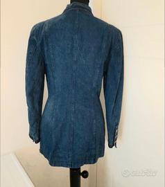 ERREUNO JEANS Giacca invernale donna denim blu, imbottita, maniche trapuntate, tg.42 M. Lunghezza 73. Bottoni dorati. Profili in passamaneria blu. Colletto. 4 tasche con bottoni Chiusura 5 bottoni. Maniche 3 bottoni. Torace 50, colletto 8, spalle 48, vita 42, fianchi 48. Manichino tg.42 vedi foto misure Vintage in ottime condizioni Senza difetti Adatta autunno, inverno, primavera. ERREUNO JEANS Made in Italy