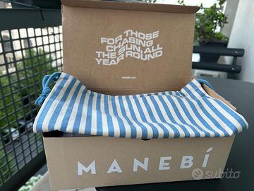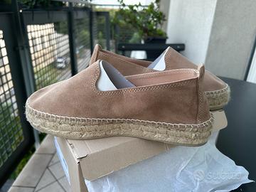 Espadrillas Manebí colore beige numero 39: comoda, leggera e allo stesso tempo elegante, colore neutro perfetto per ogni outfit estivo. In morbido tessuto scamosciato con doppia suola in juta (altezza 4 cm) e base antiscivolo.