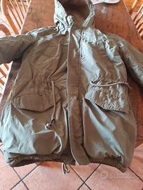 Eschimo verde militare con interno in pelliccia sintetica, taglia 46