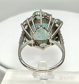 Importante, raro ed Unico anello 7 gemme Natural Tourmaline Paraiba E Diamanti Certificati AIG Milan