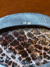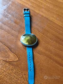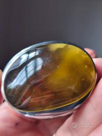 Vendo un pezzo unico di alta gioielleria artigianale, acquistato personalmente in Polonia. Si tratta di un accessorio straordinario, dal design ricercato, che unisce la maestria dell'argento 925 alla bellezza millenaria dell'ambra baltica naturale. L'elemento centrale è una grande pietra di ambra di rara bellezza: un colore verde profondo che, illuminato dal sole, rivela spettacolari venature "nuvolate" giallo oro e bianche, caratteristiche dell'ambra autentica e pregiata. La lavorazione della pietra mostra, anche al naturale, il fascino delle inclusioni originali. La particolarità di questo gioiello è la sua versatilità: Grazie alla struttura della montatura in argento, il pezzo può essere indossato non solo come bracciale, ma può essere facilmente trasformato in un magnifico ciondolo passando una catenina attraverso l'apertura dove scorre il cinturino. Avrete così due gioielli in uno! Caratteristiche tecniche: Materiale: Argento massiccio 925 (punzonato). Pietra: Ambra baltica naturale di alta qualità. Cinturino: Vera pelle blu, marchiato "Made in Poland". Lunghezza totale 25 cm (regolabile). Condizioni: Pari al nuovo, indossato pochissime volte (circa 2 o 3 occasioni). È un esemplare unico, elegante e di grande impatto visivo. Perfetto per chi cerca un oggetto artigianale che non passa inosservato. Disponibile per consegna a mano a Imola (Bologna) e zone limitrofe, così da poter apprezzare di persona la qualità del manufatto. Non spedisco.