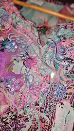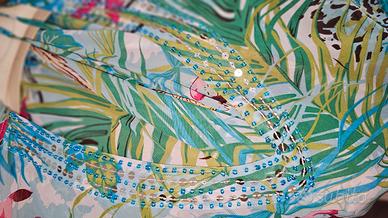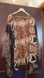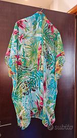 Caftano estivo da donna con stampa cachemire e fantasie flora e fsuna, taglia unica, copricostume da spiaggia leggero e per le passeggiate delle belle serate estive.