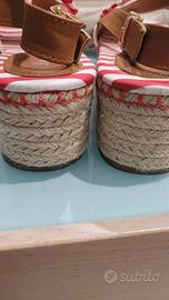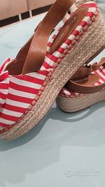 Espadrillas in cotone a righe rosse e bianche con zeppa
