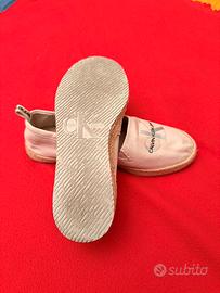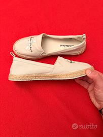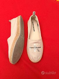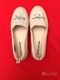 Aggiungi un tocco di stile essenziale e raffinato al tuo look con queste espadrillas originali Calvin Klein Jeans. Dal design minimal e contemporaneo, sono perfette per la stagione estiva e per chi ama un’eleganza semplice ma riconoscibile. Realizzate in tessuto beige di alta qualità, presentano l’iconico logo CK frontale che dona carattere e autenticità. La suola in corda intrecciata richiama il classico stile espadrillas, garantendo comfort e leggerezza ad ogni passo. Ideali per outfit casual, vacanze, passeggiate al mare o in città: un must-have versatile che si abbina facilmente a qualsiasi look.