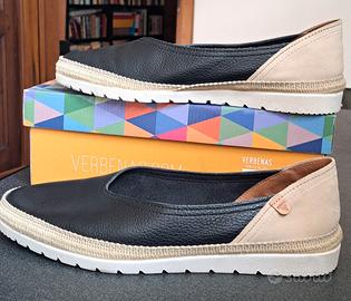 Espadrillas da donna in morbida pelle nera e camoscio beige. Usate una sola volta.
