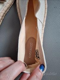 Vendo espadrillas dorate e in corda, mai indossate. Riportano il nr. 39 ma vestono piccolo. Vendo in quanto non essendo un reale 39, per me sono strette.