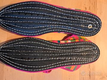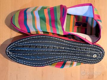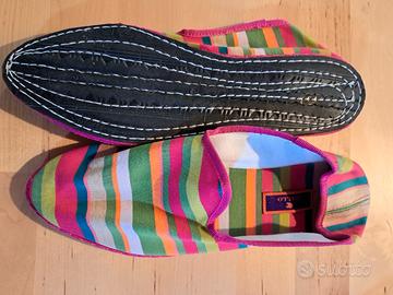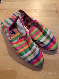 Espadrillas Gallo fantasia a righe (fucsia, arancio, verde, azzurro), estive, classiche, in tela, con suola in corda. Nuove. Taglia 39