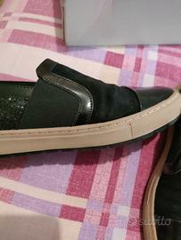 Vendesi scarpe nere da donna tipo espadrillas, con alcune parti in pelle, altre in camoscio e altre con i brillantini. Marca Geox n.36.