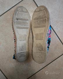 Espadrillas donna taglia 38, usate ma come nuove. Vestono leggermente grandi. Colore nero a fantasia fiori.