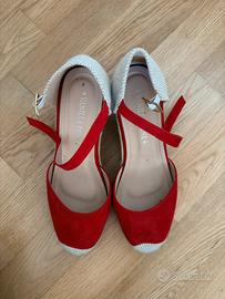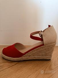 Espadrillas rosse con zeppa in camoscio taglia 39