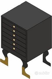bellissimo ed elegante mobile espositore in legno riciclato nero per occhiali , doppio lato eposizione con cassetti ricarica e specchi visione , comodino ricarica