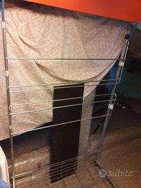 Espositore scarpe ideale per vetrina 4 piani di appoggio scarpe in acc.movibile con rotelle e barra (rossa) sopra per la vostra pubblicità, usato pochissimo, vendo per cessata attività