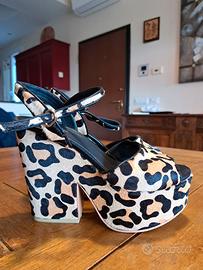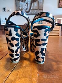 sandali con tacco a blocco spesso e base a platou tutto rivestito in cavallino. tg. 37 .platou cm.4,5 tacco cm.9