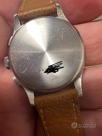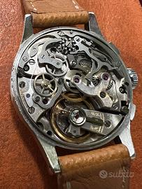 Orologio eterna cronografo valjoux 23 , quadrante nero oroginale, cassa in acciao 36 mm , tutto firmato cassa e movimento eterna!! Revisionato e in ottime condizioni generali!!