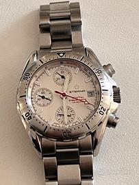 ETERNA MATIC KONTIKI CRONO AUTOMATICO CASSA DA 42 MM VETRO ZAFFIRO CINTURINO ACCIAIO QUADRANTE BIANCO 120 ATM PERFETTAMENTE FUNZIONANTE REVISIONATO E LUCIDATO SCATOLA INTERNA IN SIMIL PELLE UN PO' ROVINATA PER IL TEMPO... COMPLETO DI SCATOLA ORIGINALE E GARANZIA