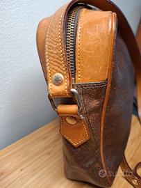 Borsa originale Made in Italy, Etro , a tracolla ,color cuoio e fantasia Paisley in pelle . Tasca posteriore e interna. Chiusura superiore con zip, con dettaglio in pelle a contrasto