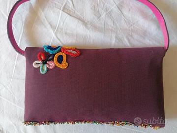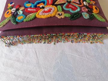 BORSETTA FIRMATA ETRO LIMITED EDITION TUTTA RICAMATA DAVANTI DI PERLINE E FRANGE IN PERLINE COLORATE DISEGNI FIORATI STUPENDA NUOVA PAGATA CARISSIMA VERO AFFARE MISURE CM. 29 X 16