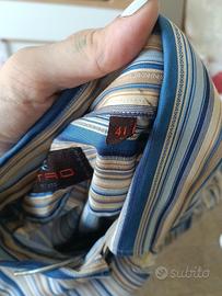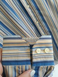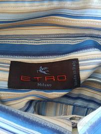 Etro Camicia a maniche lunghe in cotone a righe sul blu beige giallo bianco tg 41 Uomo, vintage