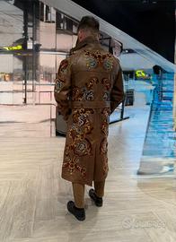 Un capospalla spettacolare e unico di Etro, questo trench coat in pelle è un vero e proprio pezzo da collezione che combina l'artigianato di alta moda con un design audace e artistico.