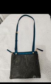 Tracolla marca Etro', con doppio borsello unito, con due tasche interne aperte nella parte interna del primo scomparto e tasca con zip interna nel secondo scomparto. Condizioni buonissime/ottime, colore verde petrolio. Leggeri segni di usura o meglio graffi impercettibili sulla parte posteriore. Leggerissimo scolorimento del gancio della cerniera. Fodera interna perfetta.. possibilità di altre foto e video della borsa...il prezzo nuovo si aggira sui 900,00€