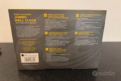 Explore Scientific RDC8001 Orologio da Parete Jumbo Radio-Controllato,visualizza temperatura interna/esterna, 1 Sensore incluso, Previsioni del Tempo ad icone, nero