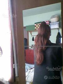 extension di capelli sintetici fatta a coda, color mogano, molto bellaq, si applica con un ciappo all'acconciatura