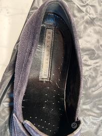 Mocassini in scamosciato blu scuro ,suola in gomma, numero 38.5 da donna, marca F.lli Rossetti originali, sacchetto in plastica con marchio