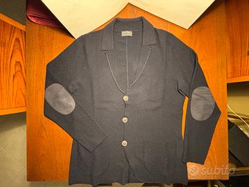 Meravigliosa giacca in lana merino di Falconeri, blu navy con toppe hai gomiti in pelle scamosciata. Pari al nuovo! No macchie o parti smagliate, scoloriture o altro. Le foto parlano da sole! Vestibilità slim, taglia XL.