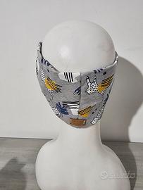 Fascia per capelli in cotone leggermente elasticizzato, con incrocio sul davanti. Base di colore grigio con piccoli disegni di gatti. Fascia alta misura 12 centimetri. Circonferenza 54 centimetri.